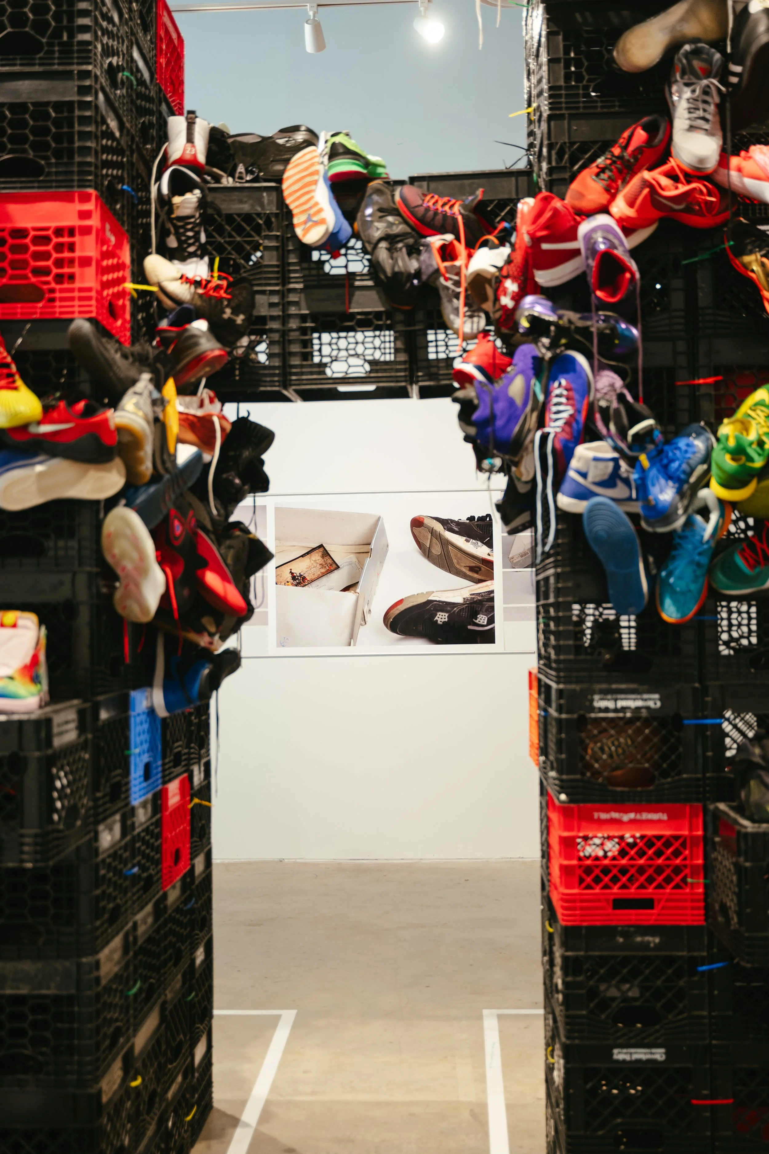 Within this exhibition, the sneaker is framed as a relic, holding the sacred traces of time and use; as an object of reverence, carrying emotional and cultural value; and as a record, documenting identity and lived experience. It functions as a memory device, storing personal and collective histories.