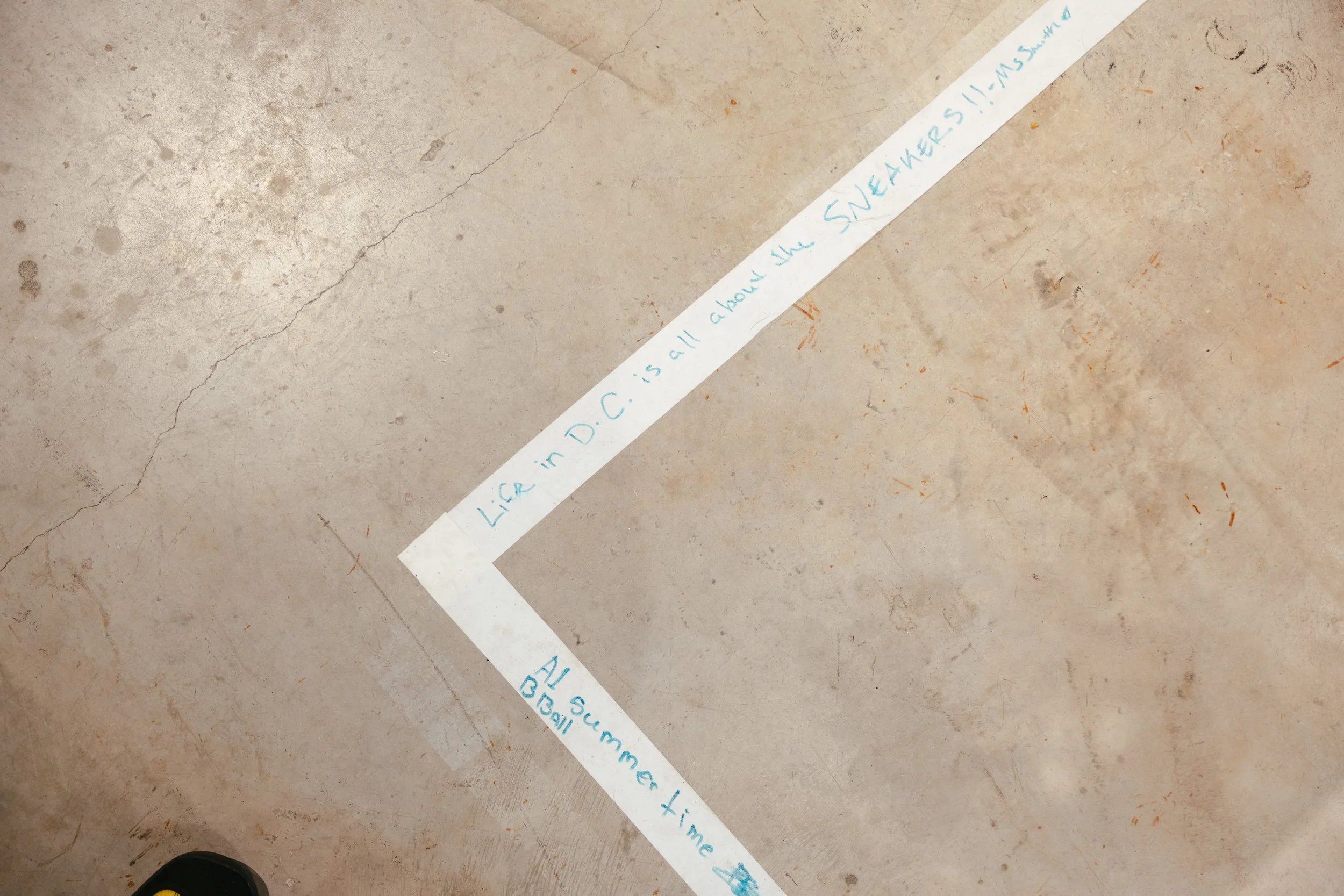 Around the structure, tape was placed strategically, like out of bounds lines on a basketball court, to give the art and viewers some boundaries. It also was a space designated to leave a message, a word, or phrase that came to mind while viewing.